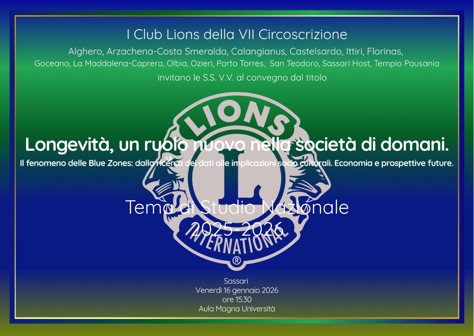 Il 16 gennaio 2026 Sassari diventerà uno dei centri del dibattito nazionale sulla longevità. Nell’Aula Magna dell’Università, a partire dalle ore 15.30, i Club Lions della VII Circoscrizione – da Alghero a Tempio Pausania, da Olbia a Porto Torres – promuovono il convegno dal titolo: